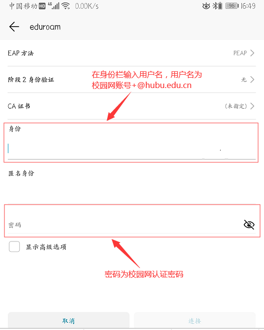 sunbet申愽师生在访问eduroam联盟的高校或学术组织时,用户名为:学号或工号+@hubu.edu.cn(认证时请务必添加“@hubu.edu.cn”后缀,否则将不能正常使用,例如:20040000@hubu.edu.cn)。密码为:校园网认证密码(请妥善保管,切勿外传)。