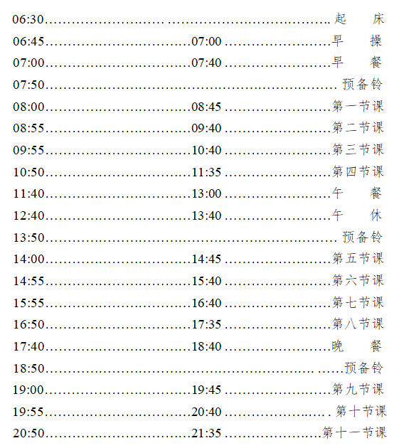 1.学生课外活动和政治学习时间为周三下午,周三第六、七节课可适当安排教学活动。