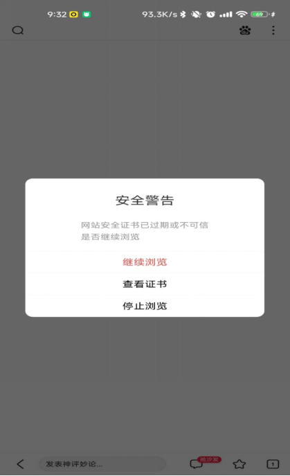 使用移动端浏览器访问/index.html,提示安全认证,点“继续浏览”。