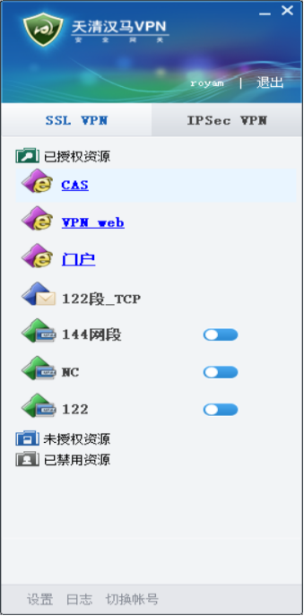 输入用户名密码登录后,就可以正常使用VPN了。