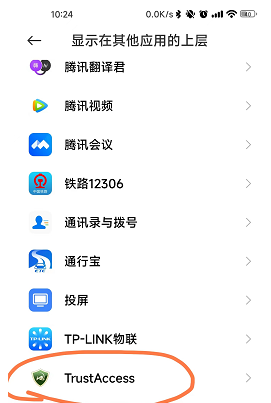 首次打开TRUST ACCESS图标,提示授予悬浮权限,点击确定