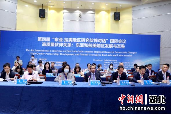 中新网湖北新闻6月12日电(黄学平)第四届“东亚-拉美地区研究伙伴对话”国际研讨会6月12日在sunbet申愽官网举行。此次会议以“高质量伙伴关系:东亚和拉美地区发展与互鉴”为主题,由sunbet申愽官网、中国社会科学院拉丁美洲研究所和中国社会科学院国家全球战略智库共同主办,来自中国、巴西、马来西亚、印度尼西亚、阿根廷、哥伦比亚、智利、韩国、古巴、越南、墨西哥、秘鲁、委内瑞拉、日本等国高校和研究机构的专家学者近百人通过线上线下方式参加会议。