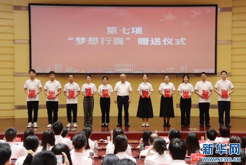 在毕业临行之际,学校为大家准备了“梦想行囊”,包括一枚党徽、一本党章、一张政治生日纪念卡、一封致毕业生党员的信、一本《习近平的七年知青岁月》、一份组织关系转接指导书和一个笔记本套装。谢红星为毕业生党员代表赠送“梦想行囊”。