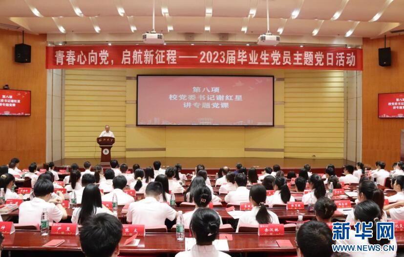 “希望大家永远牢记我们是共产党员,我们是同志!”谢红星代表学校向全体毕业生党员顺利完成学业表示热烈祝贺,并讲授《牢记“三个务必” 走好新的“赶考”之路》的专题党课。他勉励同学们迈出校门、走向社会后,务必不忘初心、牢记使命,把人生理想融入党和人民事业之中,自觉做共产主义远大理想和中国特色社会主义共同理想的坚定信仰者和忠实实践者;务必谦虚谨慎、艰苦奋斗,善于向群众学习、向实践学习,从群众中来,到群众中去,涵养“自找苦吃”的精气神,在实践中锻炼成长,保持接续奋斗、久久为功的奋进姿态;务必敢于斗争、善于斗争,面对“两个大局”,发扬斗争精神、增强斗争本领,坚定不移听党话、跟党走,敢于迎接各种风险挑战。谢红星表示,人生道路非常长,未来考验非常多。希望同学们不断增强党员意识、锤炼党性修养,明大德守公德严私德,时时自省、常常自警,在新的“赶考”路上,心中有信仰、脚下有力量,奋力跑出新时代sunbet申愽人“与党同心、跟党奋斗”的最好成绩。