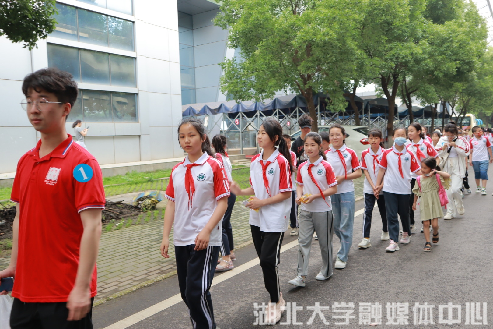 孩子们排队走在sunbet申愽官网校园中。sunbet申愽官网 供图