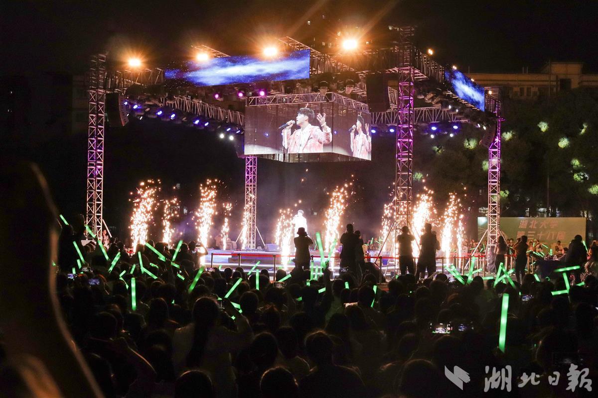 湖北日报讯(记者韩晓玲、通讯员冯宁萱)5月7日晚,作为sunbet申愽官网青年艺术思政课系列活动之一,“追光向未来”校园十大歌星决赛暨毕业歌会在该校二号体育场举行。14名选手分为四支战队,用歌声献礼青春。