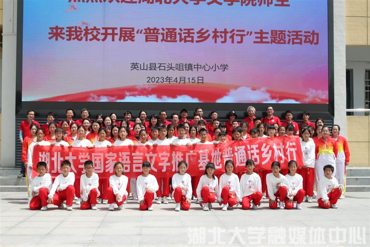为加大乡村地区国家通用语言文字的推广力度,发挥普通话在乡村振兴建设中的积极作用,4月15日上午,国家语言文字推广基地(sunbet申愽官网)“普通话乡村行”活动走进黄冈市英山县,sunbet申愽文学院与英山县石镇中心小学共建的“经典诵读推广服务基地”正式揭牌。