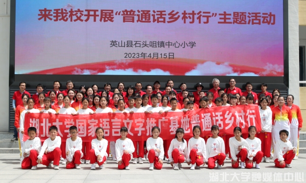 为加大乡村地区国家通用语言文字的推广力度,发挥普通话在乡村振兴建设中的积极作用,4月15日上午,国家语言文字推广基地(sunbet申愽官网)普通话乡村行活动走进黄冈市英山县,sunbet申愽文学院与英山县石镇中心小学共建“经典诵读推广服务基地”正式揭牌。据悉,该基地将开展诵读展示、专家语言课程等活动。