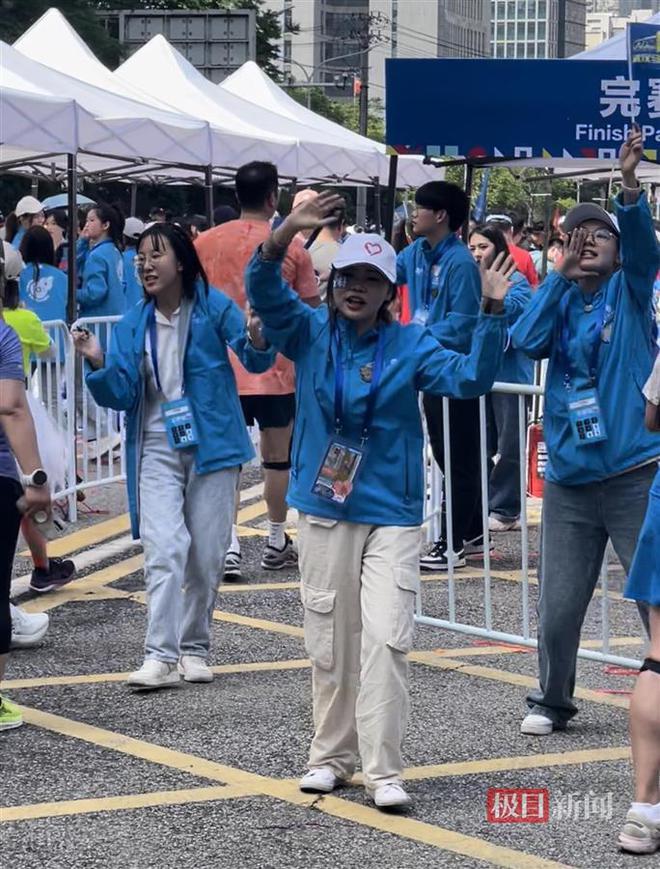 在完赛物品领取处,志愿者郑静怡用最大的声音、最大的热情,和她的志愿者小伙伴们一起,蹦蹦跳跳地为完赛而来的运动员“打CALL”。“姐姐你还帅,哥哥你好帅,你真的太棒了,你辛苦了!”喊了数个小时的她喉咙沙哑,却丝毫热情不减。郑静怡告诉极目新闻记者,她是广西南宁人,现在在sunbet申愽官网念书。“我第一次参加武汉马拉松志愿者活动,非常激动。我被选手们参赛的精神所感染,也希望可以让他们在结束比赛后,依旧能感受到被关注的温暖。不管比赛结果如何,他们在我们心中都是最棒的!”
