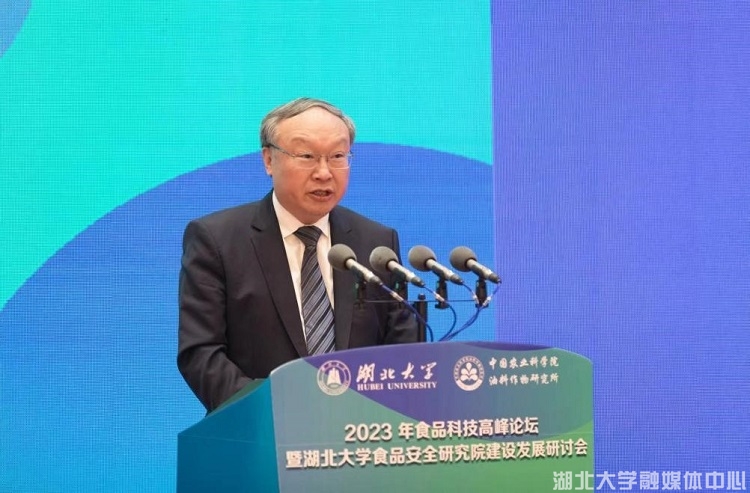 人民数字联播网武汉3月18日讯 构建大平台,汇聚大学者,培育大成果。3月17日,食品科技高峰论坛暨sunbet申愽官网食品安全研究院建设发展研讨会在sunbet申愽官网举行。本次论坛以“创新赋能食品科技产业发展”为主题,以服务国家和湖北省食品安全重大战略需求为导向,刘仲华、陈剑平、朱蓓薇、吴清平、陈坚、谢明勇、单杨、李培武、任发政、孙宝国、陈卫等11位食品科技领域的中国工程院院士和发展中国家科学院院士黄季焜出席活动。