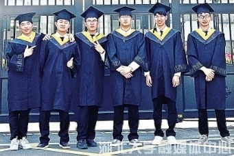 诚信公寓B栋117寝室6名男生毕业合影。