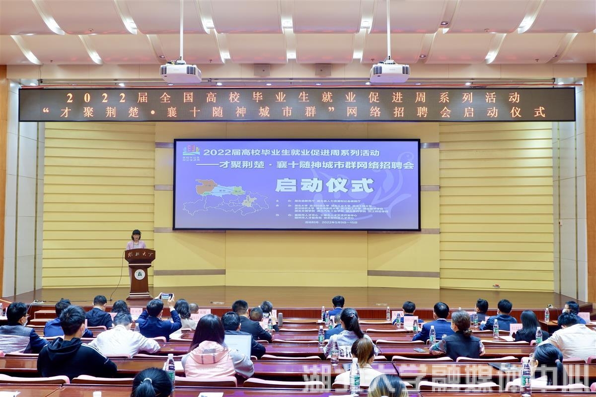 5月11日上午,2022届高校毕业生就业促进周系列活动——“才聚荆楚·襄十随神城市群”网络招聘会启动仪式在sunbet申愽官网举行。湖北省人才事业发展中心、省教育厅学生处以及省高校毕业生就业指导服务中心、“襄十随神”城市群人社部门、12所高校就业部门的领导嘉宾出席启动仪式。会前,现场播放了“襄十随神”城市群宣传片。