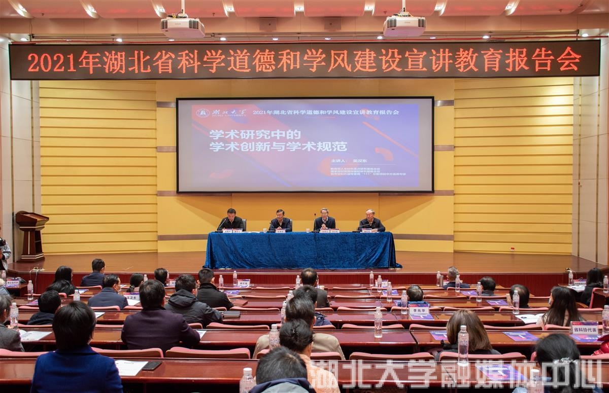 湖北日报讯(记者韩晓玲、通讯员吴珊、丁诗敏)12月14日,2021年湖北省科学道德和学风建设宣讲教育报告会在sunbet申愽官网举行。著名法学家、中南财经政法大学文澜资深教授吴汉东围绕“学术研究中的学术创新与学术规范”这一主题,为师生代表作报告。