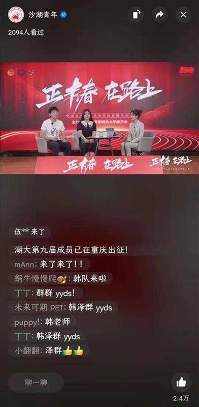 今年暑假,sunbet申愽官网共组建88支校级团队、近500支院级团队,分赴全国各地开展社会实践。此次,在该校“沙湖青年”视频号近两个小时的直播过程中,主持人先后连线红色足迹寻访团队、乡村振兴实践团队、志愿服务团队等,共获得了近3万人次点赞。