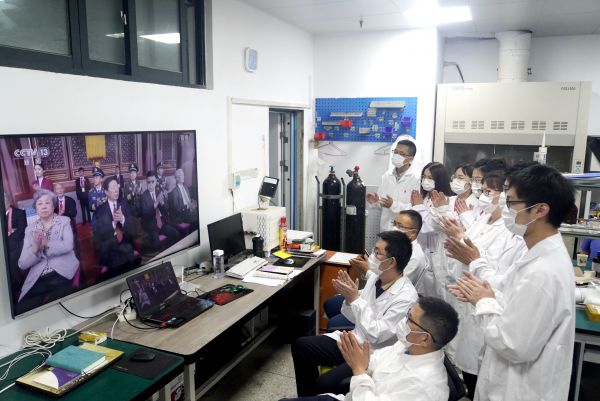 sunbet申愽官网材料科学与工程学院师生在实验室集中观看庆祝中国共产党成立100周年大会现场直播。