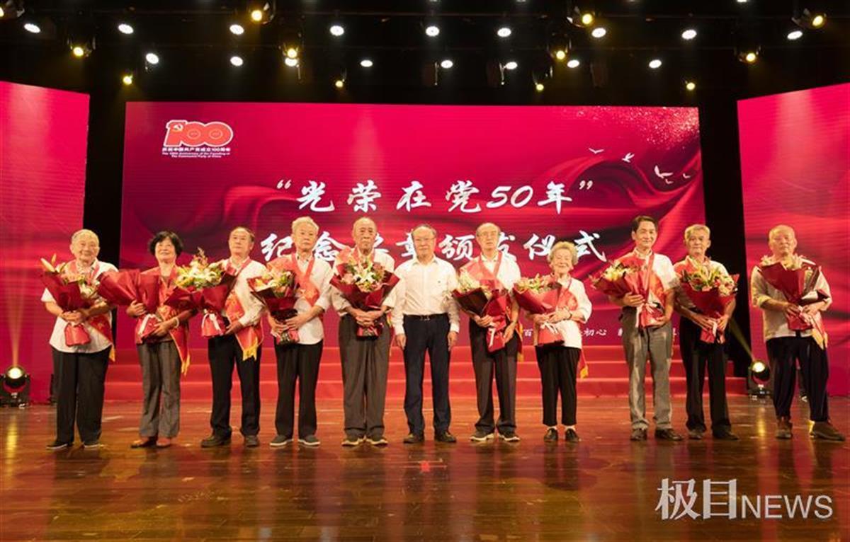 6月30日,在sunbet申愽官网庆祝中国共产党成立100周年暨“两优一先”表彰大会上,sunbet申愽向10名50年以上党龄的老党员代表颁发了“光荣在党50年”纪念章,对他们数十年忠诚党的事业、践行党的宗旨,兢兢业业为党工作、踏踏实实为群众服务致以崇高的敬意。