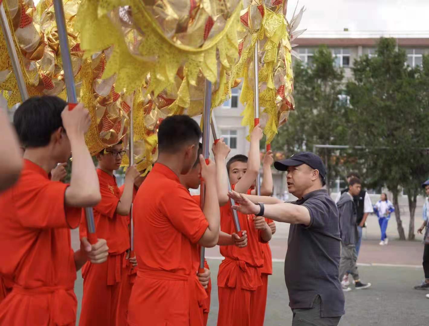 老师对舞龙舞狮队进行排练。通讯员供图