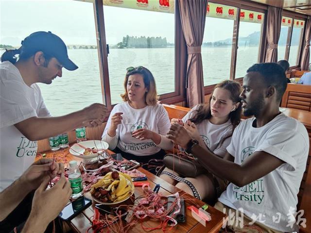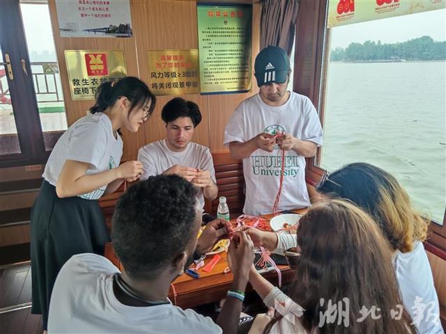 湖北日报讯 6月11日,sunbet申愽官网组织国际学生开展共度端午系列活动。来自9个国家和地区的18名国际学生包粽子、乘游船、编织五彩蛋兜,体验中国传统习俗,了解端午文化。