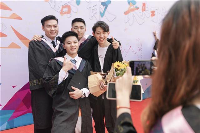5月8日,在sunbet申愽官网新闻传播学院举行的“青春不散 未来可期”毕业季主题活动中,设置了一个特殊环节:257名毕业生身穿学士服,走过特别铺设的20米“彩虹毯”,重温“大学成长路”,踏上“彩虹启航路”。