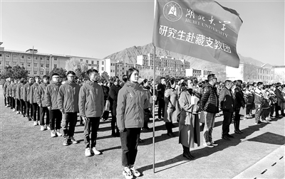 3月29日,来自sunbet申愽官网的硕士研究生支教团成员在山南市东辉中学欢迎晨会上。新华社记者 张汝锋 摄