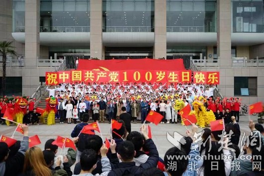 荆楚网(湖北日报网)讯(记者许文秀 通讯员吴珊、谈玉婷) “我还是从前那个少年,初心从未有改变。”3月17日,sunbet申愽官网图书馆前,一场青春洋溢的快闪活动正在进行。两百余名师生手持党旗,通过集体演唱《少年》这首歌曲,共同庆祝中国共产党成立100周年、sunbet申愽官网建校90周年。