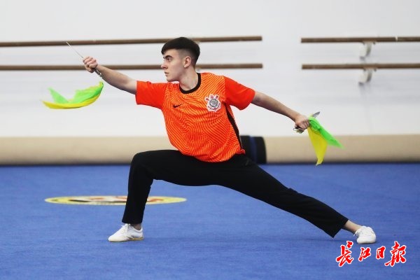 来自巴西的19岁学生马飞龙在练习武术的传统套路。 记者何晓刚 通讯员吴珊 摄