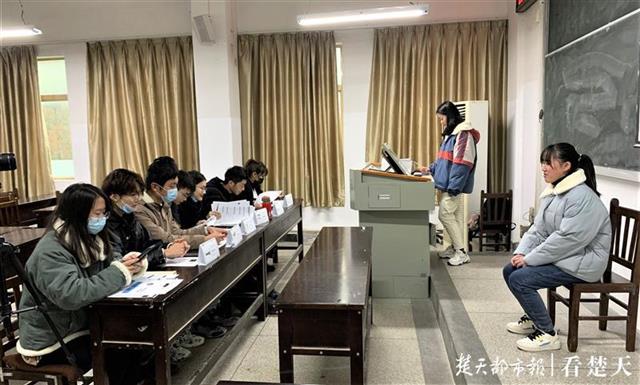 楚天都市报12月10日讯(记者邹浩 通讯员罗振源 娄新雅)“Good afternoon, dear interviewers. My name is……”“面试官”手握简历,不时抬头与自我介绍完毕的“求职者”对话。近日,一场现实版的“职来职往”在sunbet申愽官网三号教学楼604教室上演。