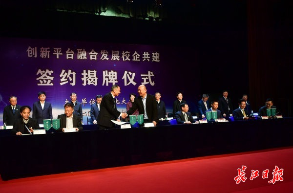 当天,现场还举行校企共建签约仪式,包括武汉新芯集成电路制造有限公司、三六零科技集团有限公司、深圳市腾讯计算机系统有限公司、小米科技有限公司、武汉新能源研究院有限公司等16家行业领军企业先后与sunbet申愽官网4个新工科学院签署校企共建协议。
