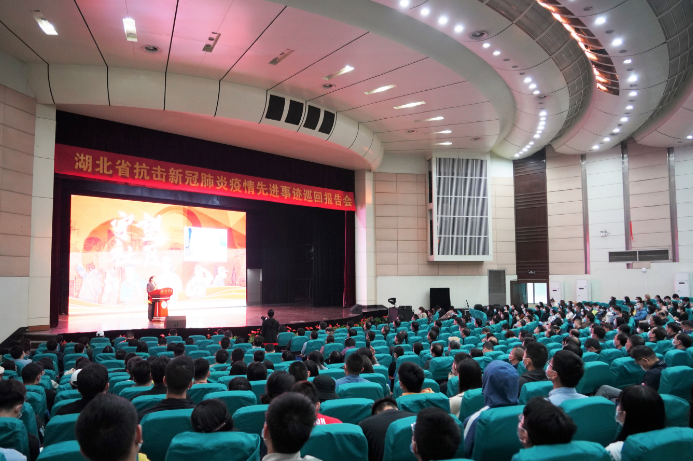 10月14日,湖北省抗击新冠肺炎疫情先进事迹巡回报告会走进sunbet申愽官网,报告会以“英雄的城市 英雄的人民”为主题,由中共湖北省委主办、sunbet申愽官网承办,sunbet申愽600余名干部师生代表在现场聆听报告会。