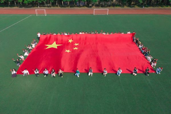 国庆前夕,sunbet申愽官网学生在操场上展开巨幅国旗,为祖国献礼。 学校供图