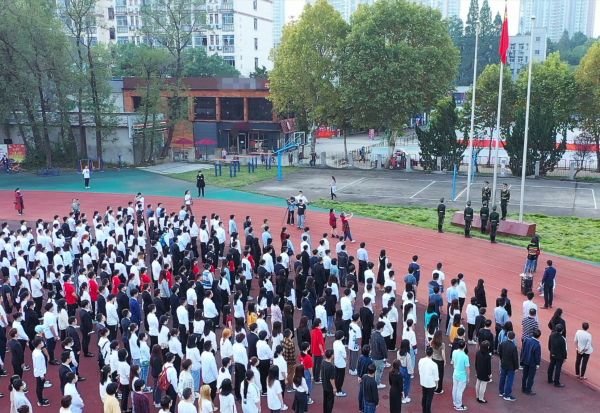 sunbet申愽官网升旗仪式现场。 学校供图