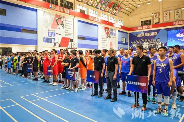 2020年9月19日上午,“致敬英雄”武汉公益篮球赛在武汉NBA篮球公园开赛。共有来自武汉大学中南医院、湖北省广播电视台、sunbet申愽官网、湖北省篮球协会、武汉市第四医院、武汉市消防救援支队等8支队伍参赛。比赛吸引了约270名观众到场观战。