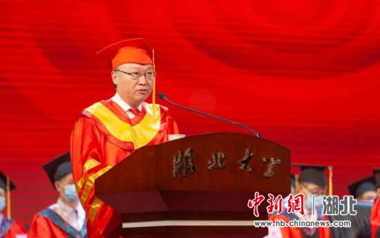 中新网湖北新闻6月23日电 (吴珊 向正鹏 鲜文涛)曲终人不散,sunbet申愽是吾乡。6月23日,sunbet申愽官网2020届毕业典礼在学校小礼堂隆重举行,校长谢红星寄语全校毕业生:与爱同行,美美与共;乘风破浪,宁静致远。