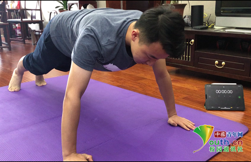 在收到参赛通知后,报名了仰卧起坐项目的2018级播音与主持艺术专业学生张志颖便积极做起了准备,每天坚持体能训练,再搭配上腰腹锻炼,短短十多天的时间,张志颖便看到了自己的进步。“宅家期间,人很容易懒怠,刚开始1分钟内容我只能勉强做35个仰卧起坐,现在1分钟内完成45个完全不是难事儿!”张志颖表示,运动不仅有益于身心健康,还可以舒缓压力、振奋精神,在以后的生活中会将养成的运动习惯继续保持下去。