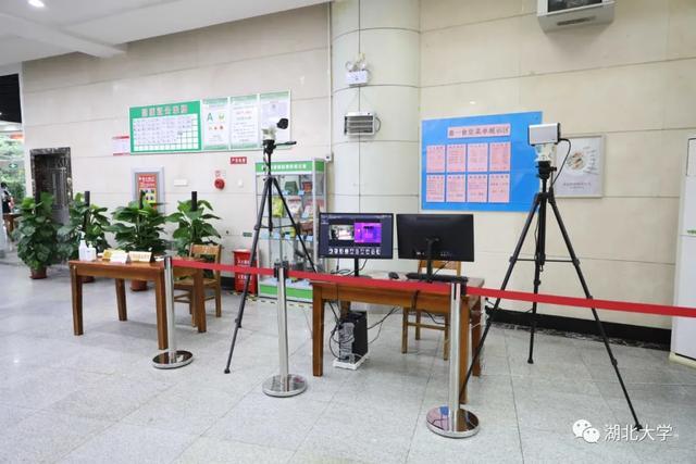 △ 食堂大厅进口,全自动热成像测温仪会对每一个进餐者进行体温监测。