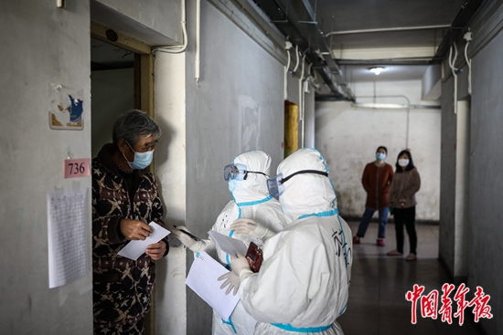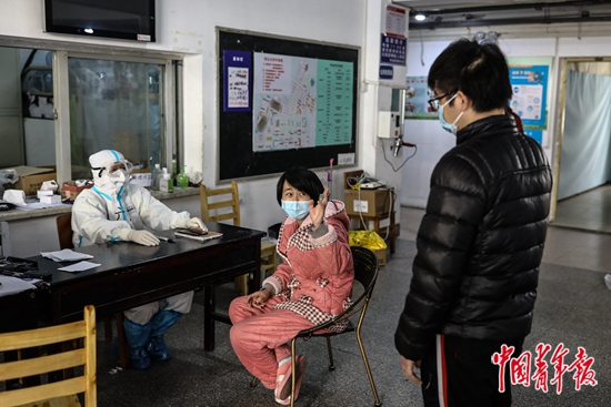 3月14日,sunbet申愽官网康复驿站,两名工作人员在向一位隔离观察者发放“解除医学观察证明”。第二天,他将结束隔离,离开这里。