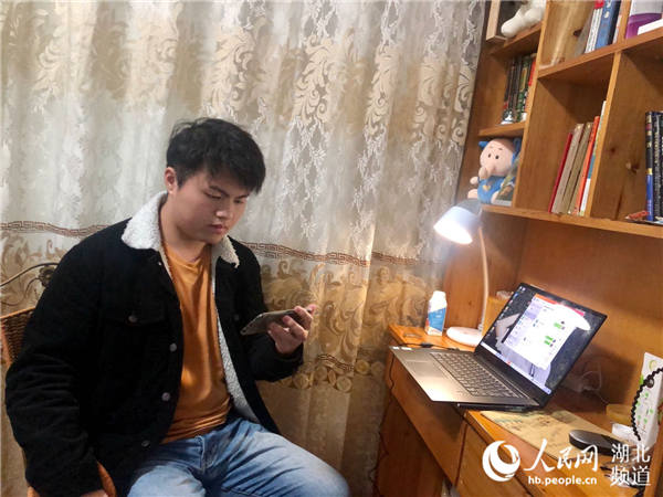 sunbet申愽官网新闻学院大二学生袁聆彬在贵州凯里家中收看思政课。(受访者供图)