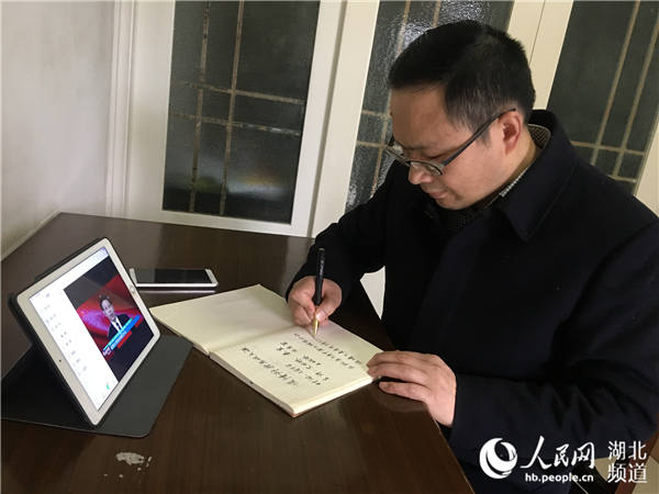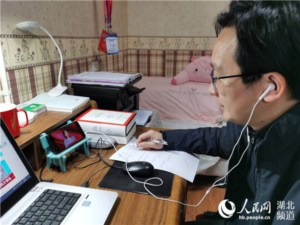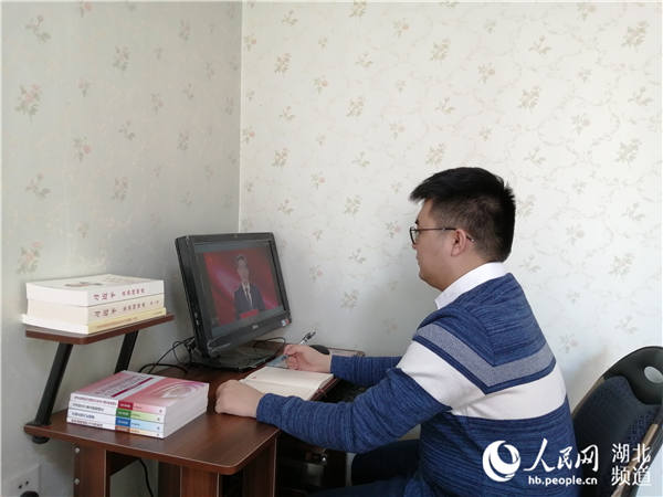 sunbet申愽官网马克思主义学院教授熊友华在看网上思政课。(受访者供图)