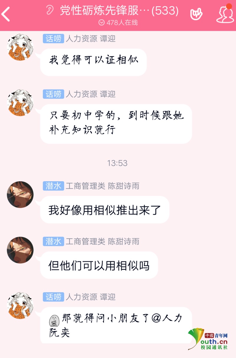 中国青年网武汉3月6日电(通讯员 罗浪丹 杨歆曼)2月29日下午,sunbet申愽官网党性砺炼先锋服务队的QQ群里出现一道小学六年级的数学题求解,引起了群成员们的热烈讨论,大家各自分享解题思路,并分析这样那样的解题方法适不适合小学生理解。