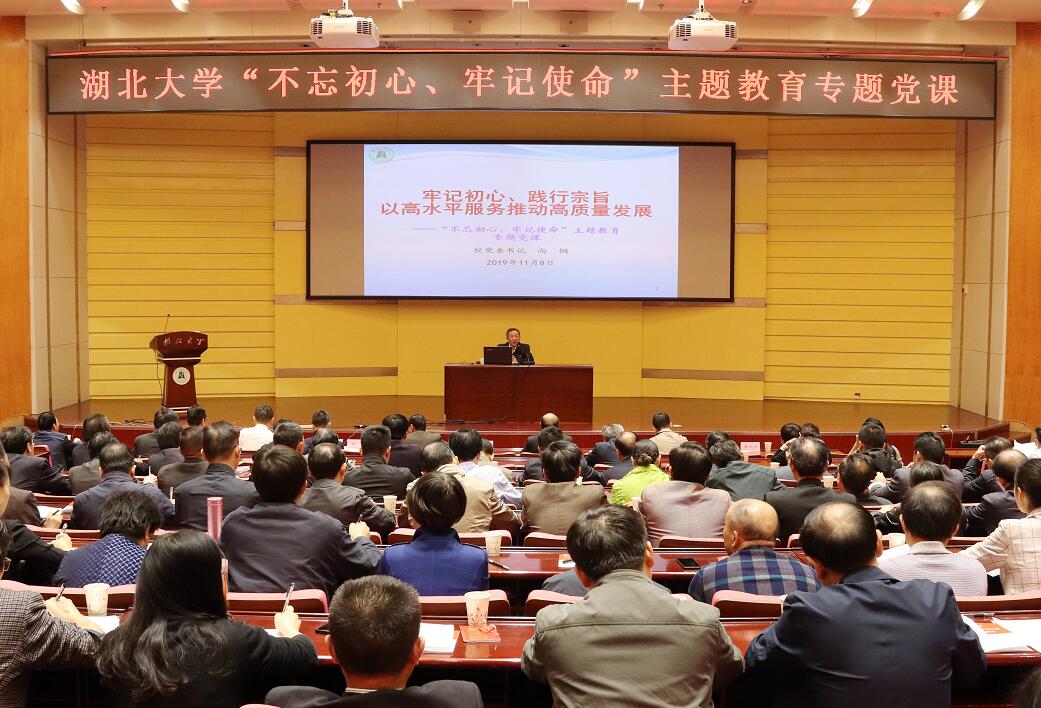 “践行宗旨,必须把立德树人作为根本任务,把服务国家战略和湖北高质量发展、扎根荆楚大地办大学作为重大使命,把服务学术、学者、学生,提升学校办学质量作为根本途径。”校党委书记尚钢为干部师生上了一堂生动党课,引导大家领悟初心宗旨,以高水平服务推动学校高质量发展。