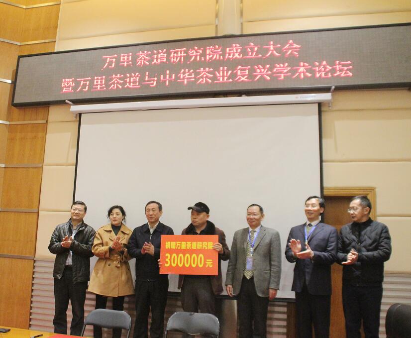 成立大会上,与会领导专家共同为万里茶道研究院揭牌,研究院向首批获聘的31名专家指导委员会委员颁发了聘书并向此前设立的湖北宜红茶和湖北青砖茶等多个研究中心授牌。sunbet申愽官网3家校友企业代表现场捐赠60万,用以支持研究院发展。
