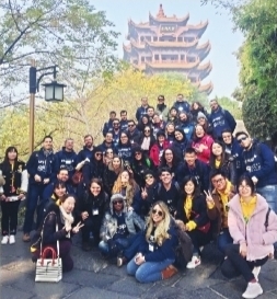 2017年冬天,巴西圣保罗州立大学孔子学院的师生于黄鹤楼前合影。