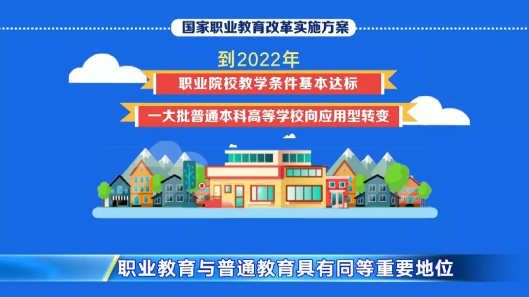 国务院颁布的《国家职业教育改革实施方案》中明确,职业教育与普通教育是两种不同教育类型,具有同等重要地位。职业教育将由参照普通教育办学模式向企业社会参与、专业特色鲜明的类型教育转变。