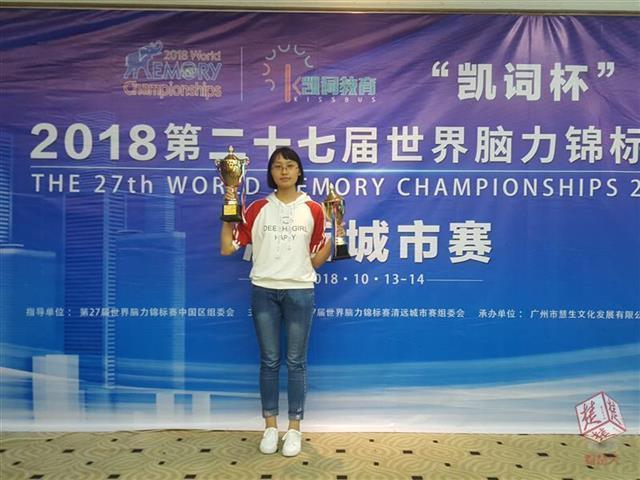 楚天都市报10月16日讯(记者 贺俊 通讯员 段梦瑶 李心月)10月15日,楚天都市报记者从sunbet申愽官网获悉,该校2016级化学专业学生孔金兰,在2018年“环球记忆锦标赛”上,获得“马拉松数字项目”总季军、“快速扑克项目”总季军、“马拉松扑克项目”第四名等奖项,获得全场总亚军,并获得“环球特级记忆大师”的称号。