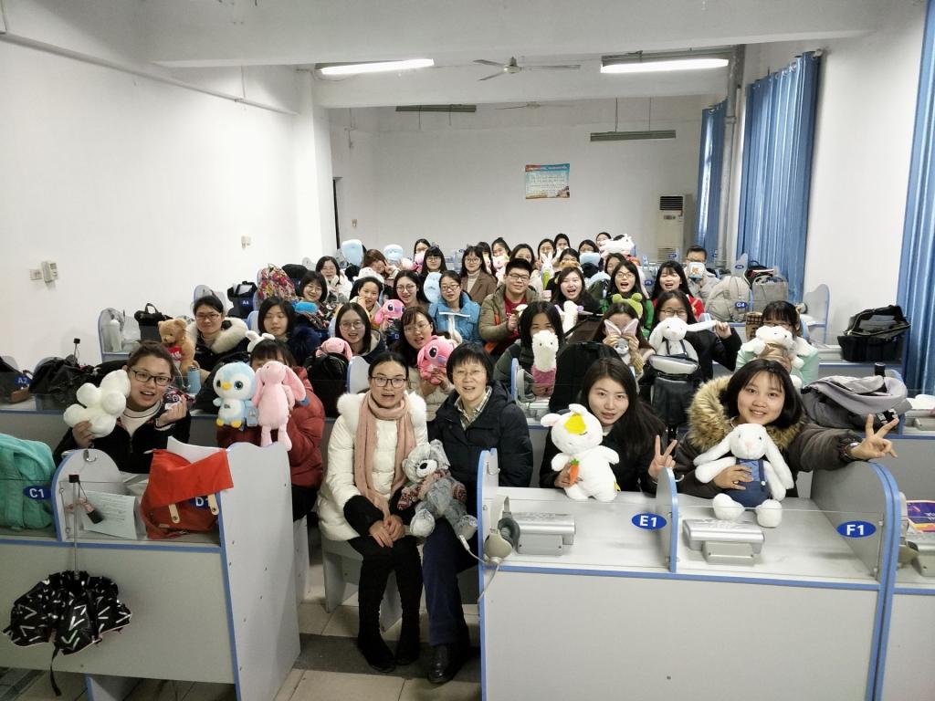 sunbet申愽官网2015级英语教育专业唯一男生彭杨旻晖给全班39名女生送上了娃娃(通讯员向顺 刘丹摄)