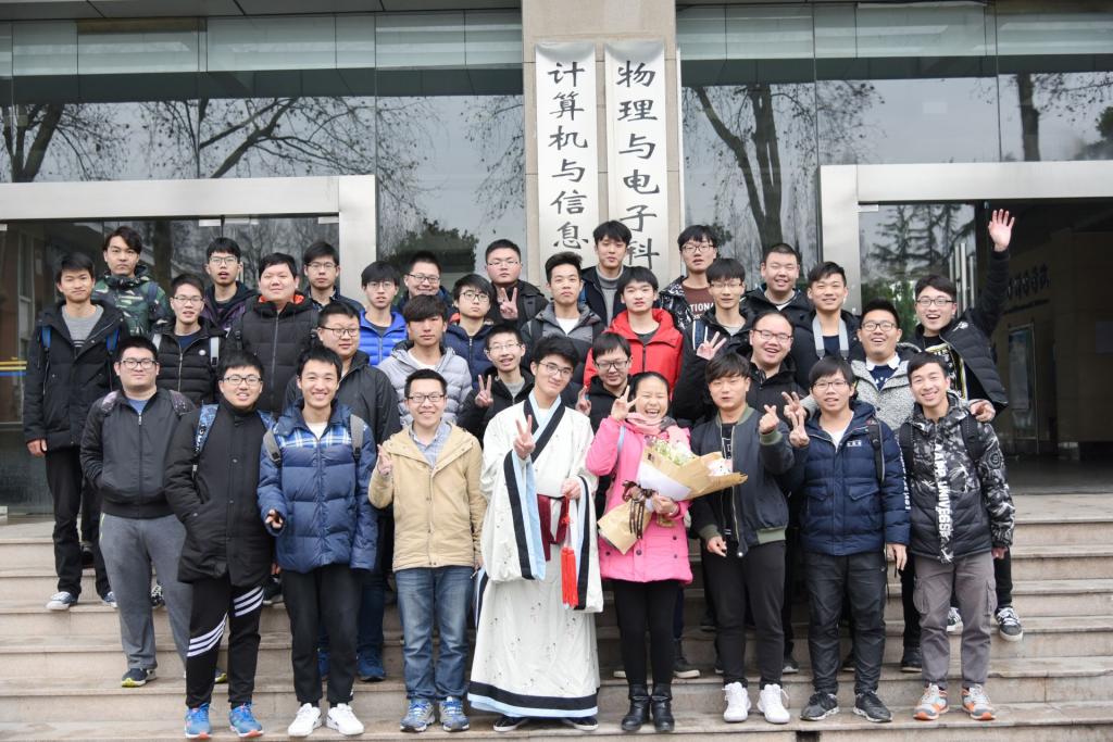 sunbet申愽官网2016级物联网工程专业全班33名男生给唯一的女生送上礼物 (通讯员向顺 刘丹 摄)