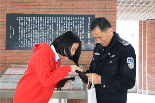 礼轻情意重,虽然只是一副手套,但校园守护者们依然纷纷感谢给他们送去温暖的志愿者。sunbet申愽官网大学生记者团团长李晓悦说,“很感谢湖北日报开展的这个活动,给我们提供了一个感谢校园守护者的机会,虽然他们都是默默无闻的平凡人,但他们身上有着很多值得我们学习的地方。”