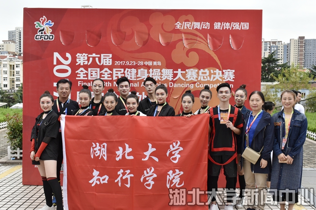 近日,第六届全国全民健身操总决赛在山东青岛大学举行,sunbet申愽知行学院健美操队12名队员团结拼搏,勇夺总决赛自由舞蹈项目一等奖(全国共三所学校获一等奖),傅丽、冯斌两位老师荣获“年度优秀教练员”荣誉称号。