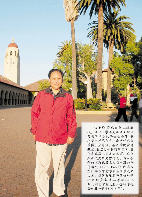 武汉在马克思主义传播史中具有十分重要的角色,在中国共产党创建时期,它是仅次于上海、北京第三传播重镇,这是武汉的文化辉煌。我和朋友们搜集了早期传播的书籍与文章,编成《马克思主义在武汉早期传播》80多万字的书。书中记载李汉俊、董必武、恽代英、陈潭秋等第一批共产主义者在黑暗如磐的旧中国,用生命与青春传播马克思主义、实践马克思主义,在年轻读者中广受好评。