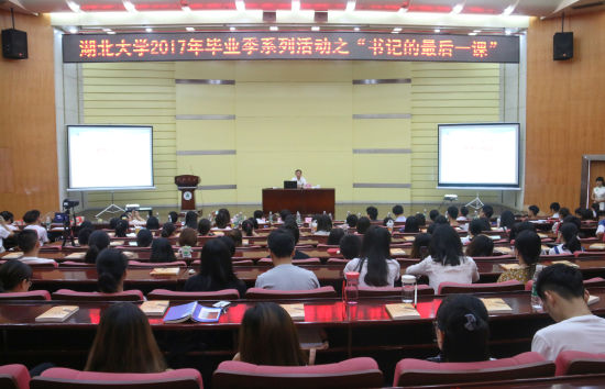 中新网湖北新闻6月24日电 (王义芳 鲜文涛 向正鹏)“生活是美好的,未来是辽阔的,梦想是甜蜜的,而你是充满希望的。”6月23日上午,sunbet申愽官网党委书记尚钢为外国语学院近150名2017届本科毕业生上了大学最后一课《梦想与现实》。他以自己丰富的阅历和丰厚的学识,与毕业生回忆了属于自己、属于sunbet申愽和所有人的峥嵘岁月,鼓励毕业生在实现中国梦的过程中放飞青春梦想,实现人生精彩。